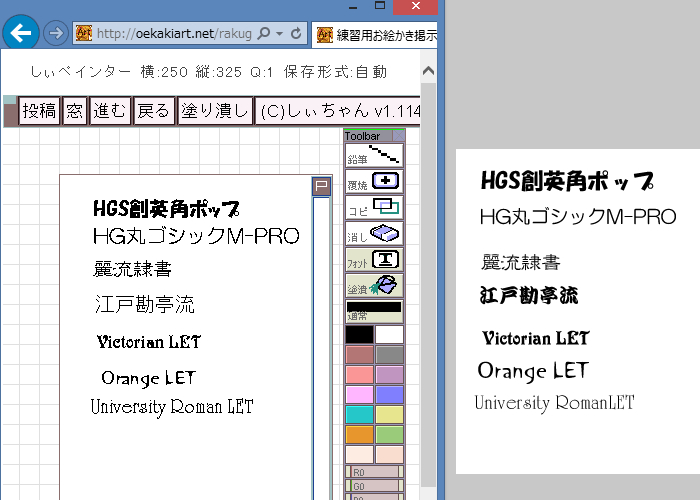 横文字オンリーだけどビクトリアンとか可愛いフォントもしぃぺで使えたのが嬉しい!!