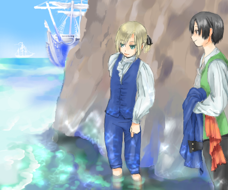 ふたりが初めて会ったのも、こんな白い砂浜の港町でした。船長はきっと覚えてないですけど。(気を失ってたし)