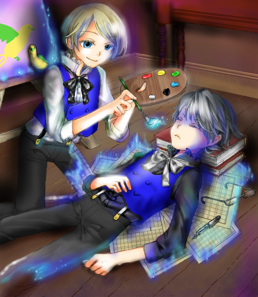 イメージはちらついたけど、「秘密の花園」にはしたくなくて、髪を整えている方の男の子は金髪にしました。コリンは作中「濃い色の髪」とされているので、別人にできたはず(`・ω・´)b