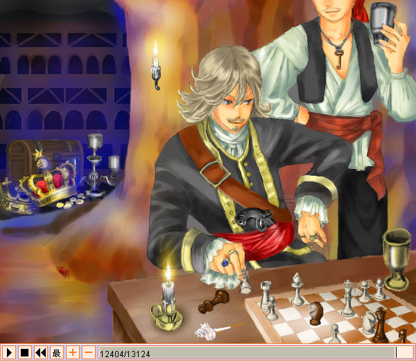 ・チェス盤は一部が画面から切れてるし、手に持ってる駒はどうとでも解釈できるよね。つか、して下さい(ーー;)