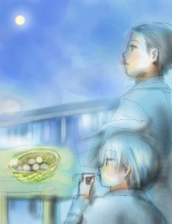月つながりで「月が綺麗ですね」というお題で何か描こうと考えたのですが、団子をもぐもぐ食べながら生返事されるという物悲しいオチしか思いつきませんでした。