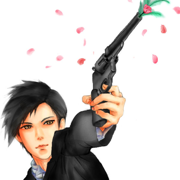 髪型は、七三に分けて三を短く、七にボリュームを持たせたアシメヘアをリアルで見掛けて、そんな感じにしたくてちょっと描いてみました。