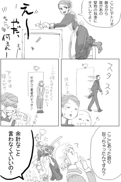 どっちかっていうと、私の関心はメイドや執事より、使用人たちの生活や屋敷のお仕事にあると思う(^_^;)なんじゃそりゃ