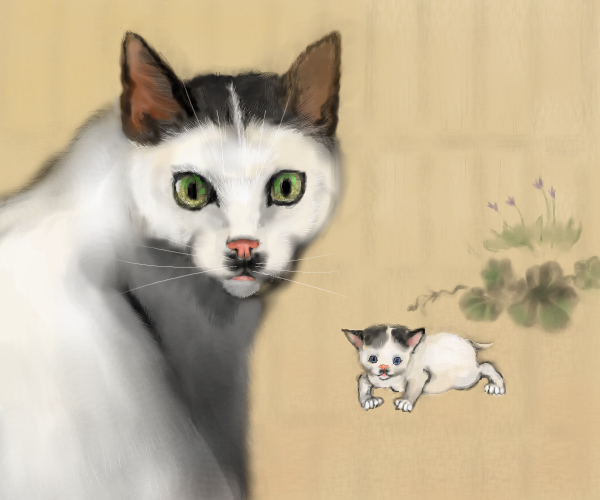 こんな拙い絵ではありますが、絵師名簿に年賀状を下さったモリエールさんとくわのこさんに進呈いたします。