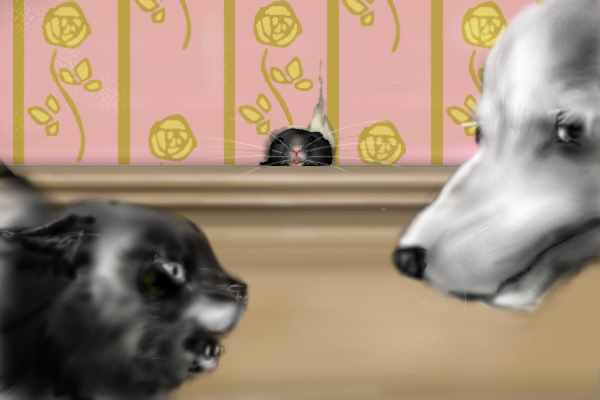 家で飼っていたハムスターやはつかねずみが、ひげで触って自分の顔の前にあるものの形や大きさを調べている様子だったので、最大限にひげを使ってる感じにしてみました。