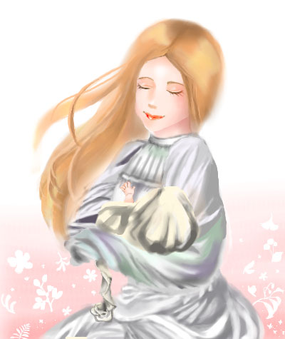 ただの聖母子では面白くないだろうと思って、大仏パーマ・割烹着・つっかけの、昭和のおっかさんを聖母子風に仕立てようかとしていました。