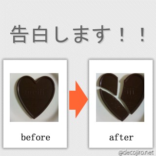 これは今年のバレンタインデーの頃に、ハートチョコを真っ二つに割るとどうなるかという長年の疑問に終止符を打つべく実行したときの写真です。