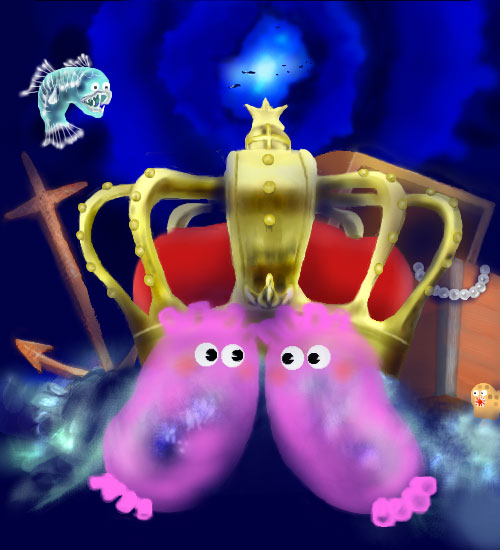 瓶を振ってみると、ゆったりと漂う王冠とキラキラ光る浮遊物は可愛らしく、海底っぽい雰囲気もばっちり。
