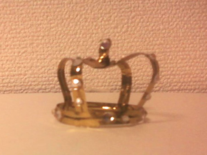 金色のビニタイと、ネイルアート用のラインストーンで作った王冠。
