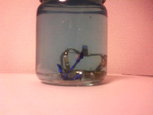 でも、これだけ動きが緩慢になると同じビニタイで作った王冠と錨が、浮き沈みの早さが同じになって絡まってしまっています^^;