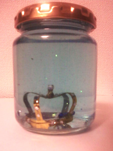 ジャムの空き瓶にドーム液を作って沈めてみました。