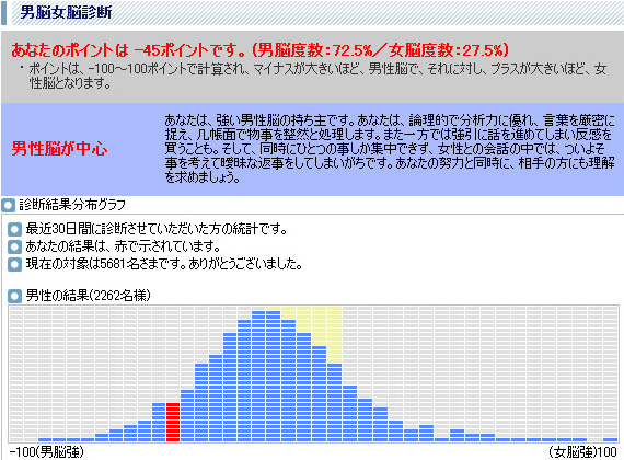 内訳は、人の話を聞かない男脳と地図の読めない女脳のハイブリッドです。←嬉しくない